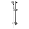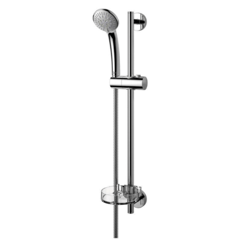 Zuhanyszett szappantartóval 3 funkcióval. A csaptelep térfogatárama 8 liter / perc. Kerek kivitelben.