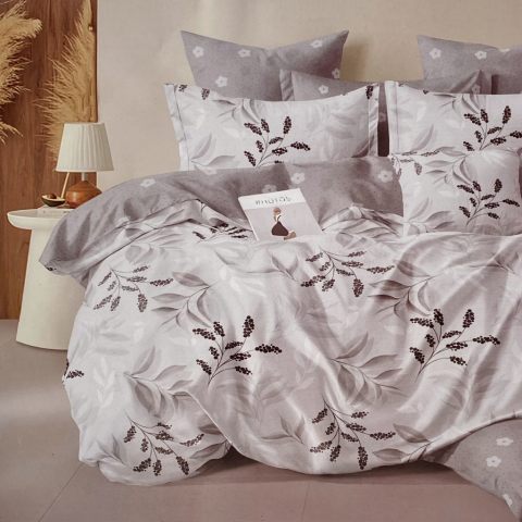 Teljes idealisotthon 3 részes krepp ágynemű garnitúra - szürke virágos termékleírás