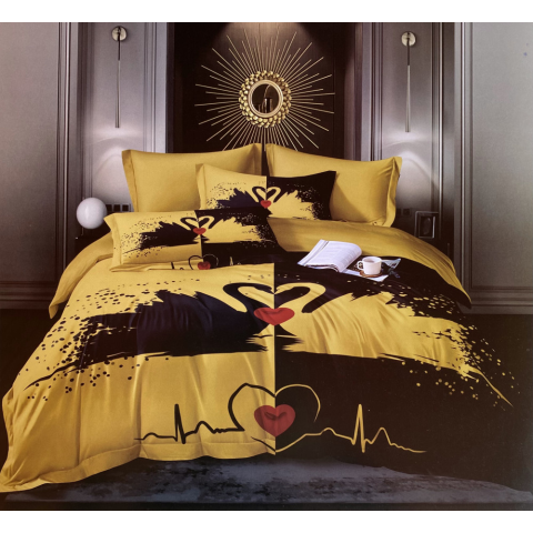 1 kép idealisotthon Ágyneműhuzat pároknak - hattyúk - fekete és sárga