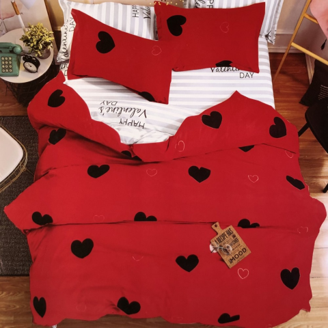 1 kép idealisotthon Szívecskés 6 részes ágynemű - vörös-fekete