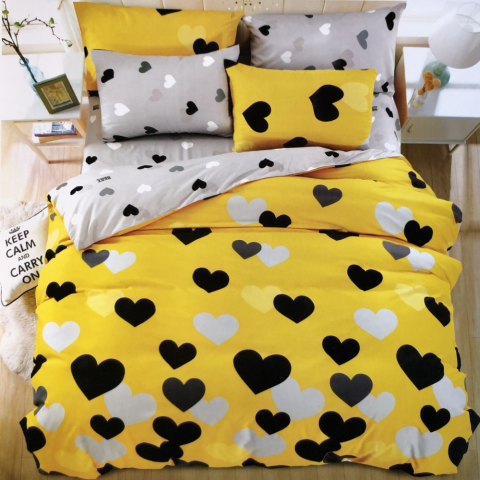 Teljes idealisotthon Szívecskés 7 részes ágynemű - sárga-fekete termékleírás