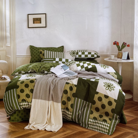 Teljes idealisotthon Zöld pöttyös virágos 6 részes kétoldalas ágyneműhuzat termékleírás