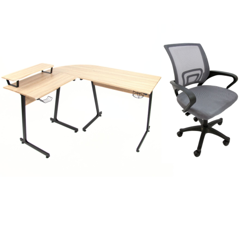 1 kép IdePar Sarokasztal készlet Hast - tölgy/fekete + szék Argo szürke
