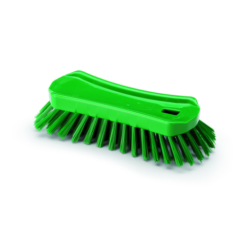 - kézi súroló kefe - ergonómikus - zöld sörtéjű - HACCP rendszerbe illeszthető - többcélú felhasználásra alkalmas az élelmiszeriparban: tartályok, konténerek, munkaasztalok, vágódeszkák, és gépalkatrészek tisztítására - közepes sörte vastagsá