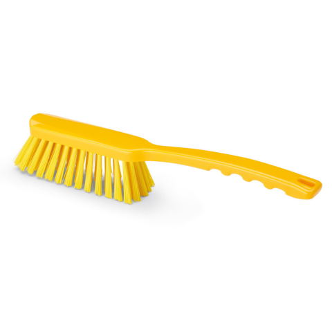 - kézi higiéniai kefe - közepes nyéllel - sárga sörtéjű - HACCP rendszerbe illeszthető - alkalmas: munkaasztalok, vágódeszkák, reszelő gépek, gépalkatrészek, vagy egyéb élelmiszeripari berendezések tisztítására - vastag sörtével (0.75 mm) - 5