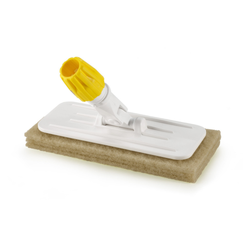 Igeax élelmiszeripari súroló pad menetes tartóval sárga - súroló dörzs pad, nyélbefogós tartóval - sárga - méret: 250x120x25 mm - HACCP rendszerbe illeszthető - a PAD közepes erősségű, a szín itt nem az erősséget jelöli - 130 °C -ig hőálló