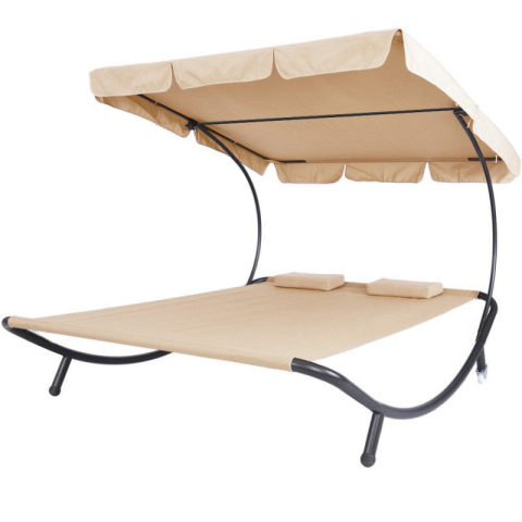 IHO-460 Kétszemélyes napozóágy árnyékolóval-bézs kerti bútor termékleírás