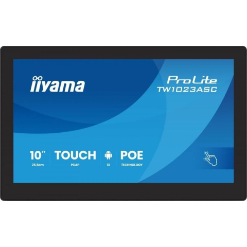 iiyama TW1023ASC-B3P. Képernyő méret: 25,6 cm (10.1"), Képernyőfelbontás: 1280 x 800 pixelek, Kijelző technológiája: LCD, Válaszidő: 25 ms, Alap képméretarány: 16:10, Vízszintes látószög: 160°, Függőleges látószög: 160°. Beépített hangszóró(k). Termék színe: Fekete