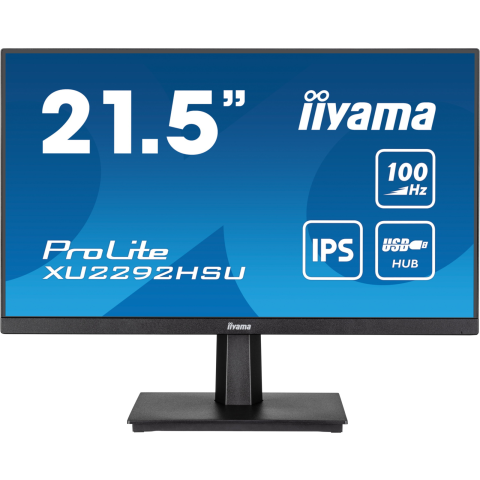 Monitor - IPS, Full HD, 1920 × 1080 (16:9), 100 Hz, matt kijelző, 4 ms, FreeSync, hangszórók, HDMI és DisplayPort, VESA Ez a kompakt iiyama LCD monitor 21,5" képátlóval és szabványos Full HD (1920 × 1080) felbontással büszkélkedik, és alkalmas irodai szoftverekkel végzett munkára, e-mailek írására és böngészésre. Az IP