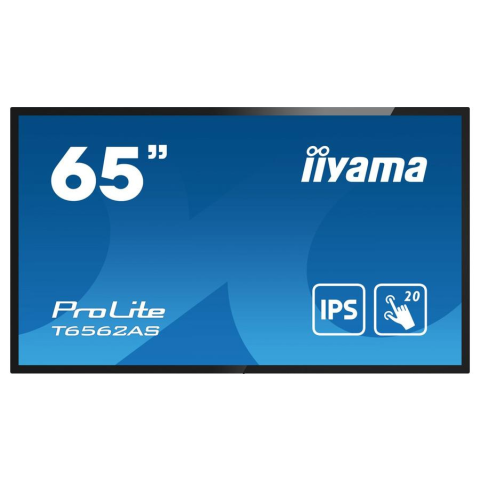iiyama T6562AS-B1. Termék dizájn: Interaktív síkképernyő. Képernyő méret: 163,8 cm (64.5"), Kijelző technológiája: IPS, Képernyőfelbontás: 3840 x 2160 pixelek, Fényerő: 500 cd/m², HD típusa: 4K Ultra HD, Érintőképernyő. Működési órák (óra/nap): 24/7. Telepített operációs rendszer: Android 8.0. Termék színe: Fekete