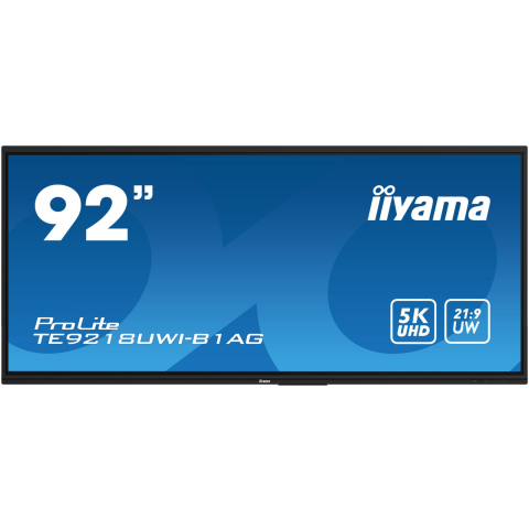 Monitor - VA, 5K, 5120 × 2160 (16:9), 60 Hz, fényes kijelző, 10 bit, 6,5 ms, érintős kijelző, hangszórók, HDMI, USB-C és DisplayPort, RJ-45 (LAN) és 2,5 mm-es RS232C csatlakozó interfész, VESA Ez a célszerű iiyama LCD képernyő 91,5" képátlóval és 5K (5120 × 2160) felbontással rendelkezik, és rendkívül részletes képet nyújt, amely ideális a vizuálisan igényes feladatokhoz. Az ilyen típusú me