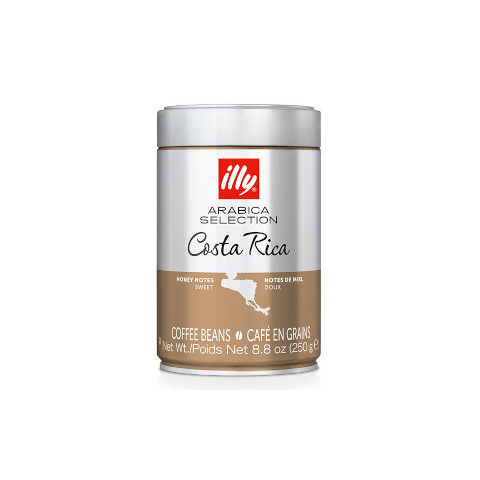 illy Costa Rica 250 g – Szemes kávé Fedezze fel az illy minőséget Costa Rica szemes kávéjával, most 250 g-os csomagolásban. Ez a 100% Arabica alapú kávé Costa Rica legkiválóbb szeméből származik, gondosan pörkölt és mosott feldolgozáson át finoman ki