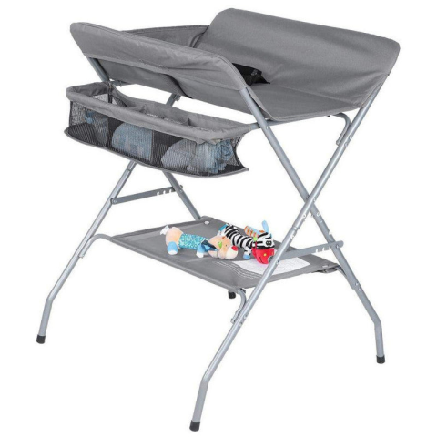Összecsukható baba pelenkázó nagy tárolóhellyel, stabil és biztonságos övvel.