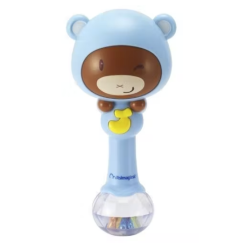 Babacsörgő, amely rázással aktiválható, így segíti az akaratlagos mozgások kialakulását, majd azok begyakorlását és rögzülését. A csörgő alsó részén színes fények villannak fel, amelyek a zenével együtt változnak, szintén mozgásra aktiválódik. 5 hangvariációval rendelkezik: vidám zene, hangjegyek, állathangok, jazz és maraca. 2 hangerősség közül választhatunk, illetve lehetőség van és fény- és hang kikapcsolására is. Kialakítása könnyű fogá
