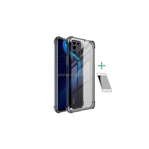 1 kép IMAK szilikon telefonvédő (ütésállóság, légpárnás sarok + képernyővédő fólia) FÜSTSZÍNŰ (GP-99029)