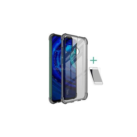 1 kép IMAK szilikon telefonvédő (ütésállóság, légpárnás sarok + képernyővédő fólia) FÜSTSZÍNŰ (GP-99031)