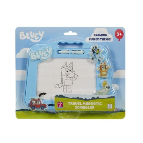 Bluey Utazós Mágneses Rajztábla: Vidám alkotás bárhol is vagy! 🎨 Ez a könnyű és hordozható rajztábla tökéletes választás a kis Bluey rajongóknak! A mágneses tollal és a három vidám Bluey bélyegzővel a gyerekek órákon át szórakozhatnak, fejlesztve kr...