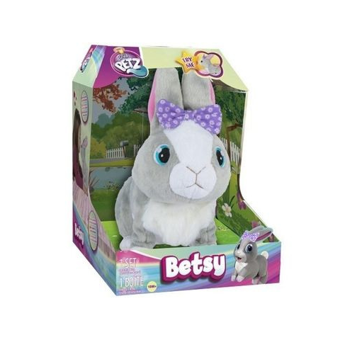 Betsy nyuszit imádni fogják a gyerekek - már csak azért is, mert ez a cuki interaktív plüss mindenhova követi majd őket. Puha, selymes, igazi öröm megölelni és hozzá bújni. Simogatás hatására elindul, ugrál, ha kedvesen szólnak neki, mozgatja a fülét és aranyos nyuszi hangokat hallat. Viszont Betsy nagyon félős is, ha kiabálást hall, megijed, elszalad és sírni kezd. Szerencsére azért könnyen meg lehet vigasztalni őt, elég hozzá egy kis szeretet és törődés.Be
