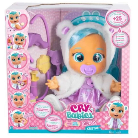 Ha a kisgyermeked rajong a varázskönnyes babákért, akkor a Cry Babies Dressy Kristal beteg baba garantáltan lenyűgözi majd. A játékcsomagban található Kristal baba gyengéd és puha ruhában érkezik, de most beteg és várja, hogy a kicsi gondoskodásával meggyógyuljon. A játék lehetőséget ad arra, hogy a kicsik ne csak anyukaszerepben próbálják ki magukat, hanem orvosként is