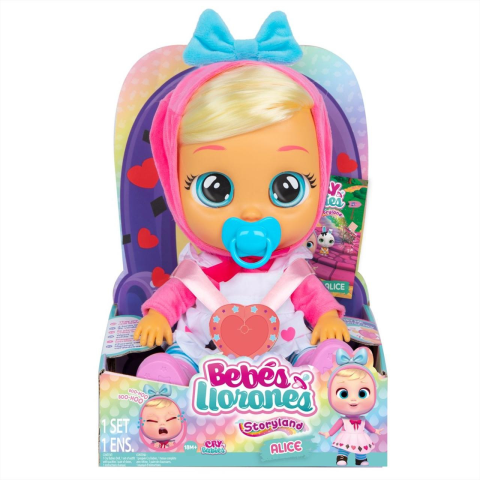 A Cry Babies babák közül most Aliz lehet az új kedvenced. Aliz a meséből jól ismert jelmezbe bújt, amitől csak még aranyosabb lesz. A Cry Babies játékok interaktívak, ugyanis ha kiveszed a cumit a szájából, elkezd sírni és óriási könnycseppek folynak végi