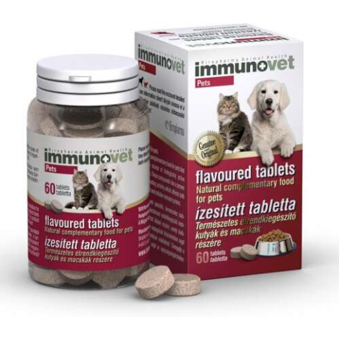 Az Immunovet Pets ízesített immunerősítő tabletta biotechnológiai úton előállított, természetes alapanyagú, új generációs immunvédelmet segítő készítmény kutyáknak és macskáknak egyaránt.Táplálékkiegészítő kisokos kutyáknak és macskáknak: