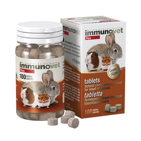 Az Immunovet tabletta kisemlősöknek könnyen adagolható étrend-kiegészítő készítmény A készítmény jó hatást gyakorol az állatok kondíciójára, élettani paramétereire, pozitív hatással van a szőrzet színére és állagára.Speciális, természetes eredetű hatóa