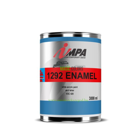 Impa 1292 Enamel Fehér UHS Akril festék (3L) Csillogó akril lakk, nem sárgul, magas HS tartalmú (VOC tartalom 420 gr/l alatt). Gyorsan szárad és igen kemény felületet képez. Az időjárási viszontagságoknak kitünően ellenáll. A karosszéria területén ipari é