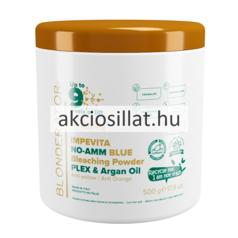 Imperity Blonderator Impevita Ammónia mentes Ultra Premium Szőkítőpor 500g (9) Korszerű, AMMÓNIA MENTES & ILLATANYAG MENTES, kék színű kompakt szőkítő por, mely természetes hajon akár 9 árnyalatot is képes világosítani. Vegán formula, az értékes plex öss
