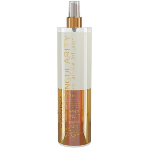 Singularity Kétfázisú Hajkondicionáló SprayKifésülést könnyítő kétfázisú hajkondicionáló spray bio argán-, lenmag- és napraforgó olajokkal, melyek erős hidratáló-, tápláló- és védőhatással rendelkeznek. UV-filtert tartalmaz a káros napsugarak és a hajsz