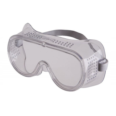 Gumipántos, arcra simuló, víztiszta színű védőszemüveg, mely minden oldalról nagyszerű védelmet biztosít a szemek számára csiszolás és köszörülés, fúrás, darabolás vagy egyéb feladatok közben. Fém, fa, műanyag, kerámia stb. kézi és gépi megmunkálása során előforduló szilárd tárgyak, szilánkok elleni védelmére készült. Általános felhasználásra, barkácsolók számára tervezték.