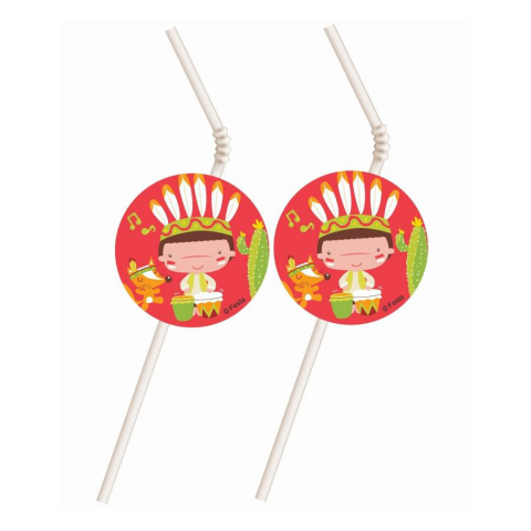 Indian Party, Indián papír szívószál 6 db-os Méret: 24 cm Anyaga: papír