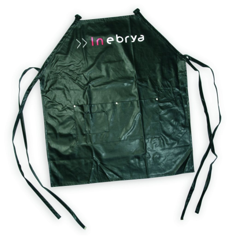 Inebrya festőkötény - Vízlepergető anyagból készült fekete festőkötény - A festőkötényre került hajfesték és egyéb szennyeződések könnyedén eltávolíthatóak - Praktikusan méretre igazítható a derék- és a nyakrészen is|en Inebrya festőkötény - Víz