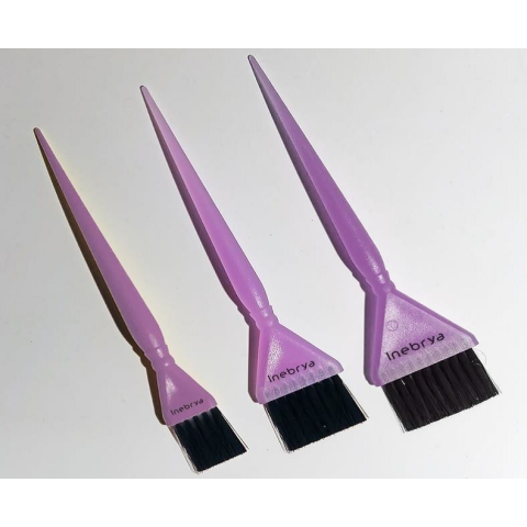 Inebrya lila hajfestő ecset szett, 3 db - Minőségi alapanyagból készült hajfestő Inebrya ecset készlet - A szett három különböző méretben tartalmaz lila Inebrya hajfestő ecsetet: keskeny, közepes és széles hajfestő ecset Kiszerelés: 3 db Inebrya lila