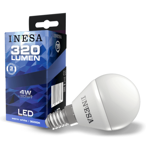 1 kép INESA LED FÉNYFORRÁS GÖMB E14 4W 320LM 3000K
