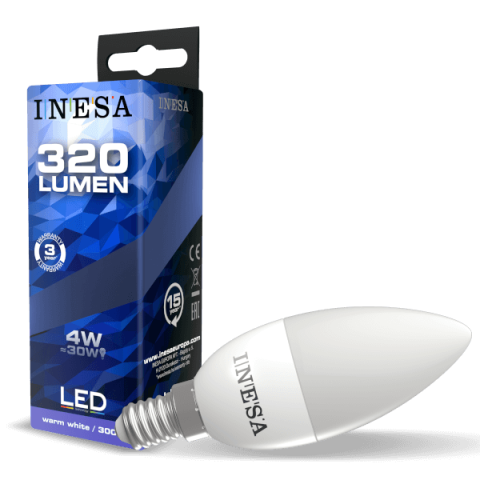 1 kép INESA LED FÉNYFORRÁS GYERTYA E14 4W 320LM 3000K