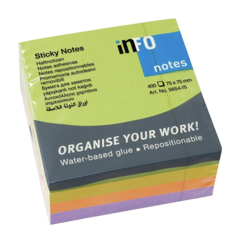 1 kép Info Notes Jegyzettömb öntapadó, 75x75mm, 400lap, spring