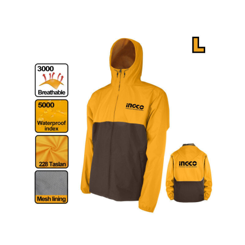 INGCO Széldzseki L-es méret Vízálló, ellenáll a hideg szél behatolásának és elkerüli a hőveszteséget1. Dupla varrású design;2. A ruhaanyag vízállósága meghaladja az 5000 víznyomást, és a légáteresztő index eléri a 3000-et;3. A ruha felülete fröccsenésb