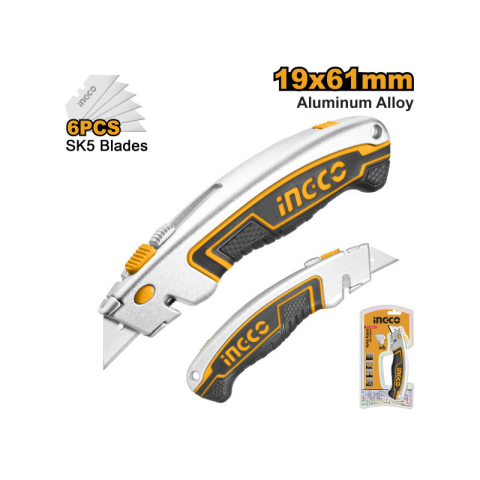 INGCO Trapézpengés kés Penge méret: 61 x 19 mmSK5 penge Szállítási terjedelem: 1 db trapézpengés kés, 6 db penge (HUKB61001), Bliszterben