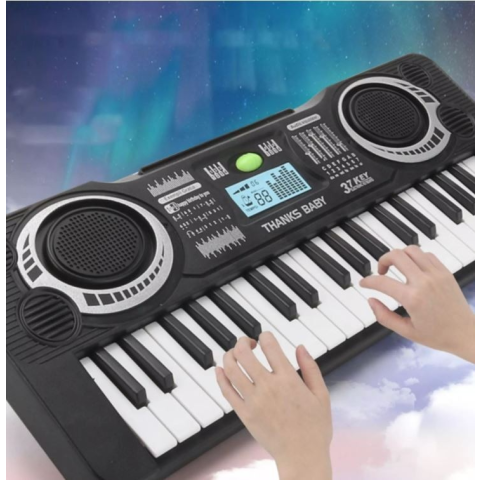 Gyermek szintetizátor A modern kialakítású gyermek szintetizátor a legjobb ajándék a kis kezdő zenészek számára. A 37 billentyűs zongora a legmegfelelőbb hangszer a jó szórakozáshoz. A játék kiváló minőségű, tartós műanyagból készült, és jól állja