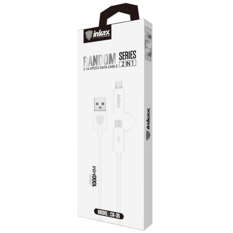 Termék kategóriája: Kábel | Kapacitása: 2.1A | Csatlakozója:2in1 | Márkája: INKAX | Színe: Fehér | Anyaga: PVC | Mérete: 100cm | Típusa: 2in1 | Alkatrész típusa (ha alkatszész): | Egyéb jellemzője: / Telefonkiegészítő vagy alkatrész a képe