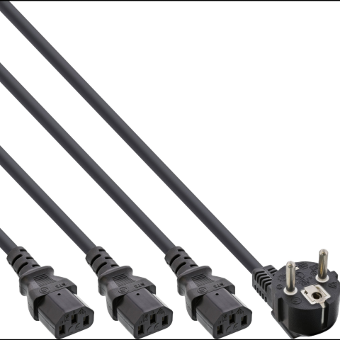 Inline 16657H tápkábel Fekete 3 M CEE7/7 3 x C13 csatlakozó (16657H) kábel és adapter 1 kép