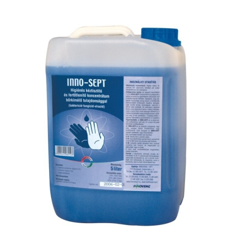 InnoSept kézfertőtlenítő - 5L Inno-Sept kéz fertőtlenítő szappan- 5000 ml Inno-sept szappan, 5000ml-es kiszerelésben vásárolható. Fertőtlenítő tulajdonságok: Higéniás kézfertőtlenítő koncentrátum bérkímélő tulajdonsággal - baktericid (MRSA is), fungic