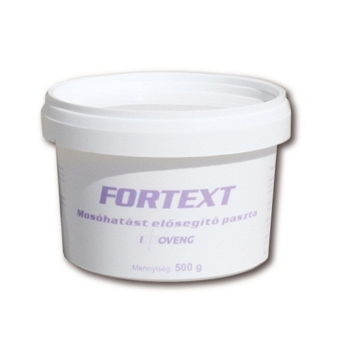 - FORTEXT mosóhatást elősegítő paszta 0,5 kg - Kocsonyás, pasztaszerű, vízben jól oldódó általános mosóhatást segítő szer. - A mosóhatás erősítő pasztát erősen szennyezett, zsíros textíliák mosásához javasoljuk adalékként. - Használat: A készítményt