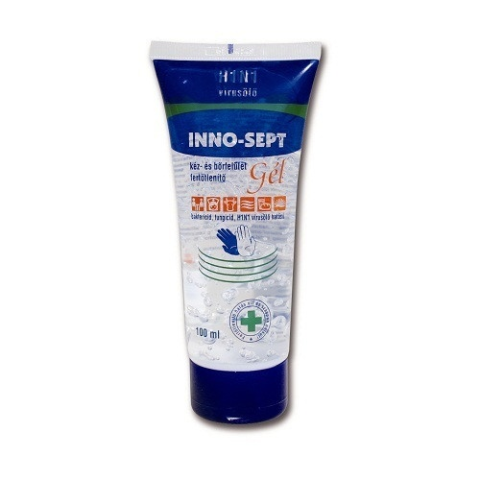 INNO-SEPT GÉL extra higiénés kézfertőtlenítő 100 ml - antimikrobiális spektrum: baktericid (MRSA), fungicid, tuberkulocid, virucid Alkalmazási feltételek: töményen, hígítatlanul kell alkalmazni, a behatási idő alatt a kezeket nedvesen kell tartani, m