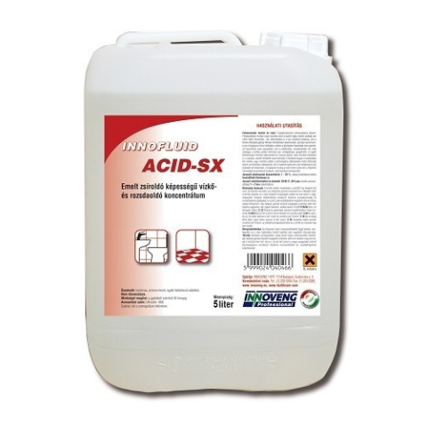 - INNOFLUID ACID-SX vízkőoldó 5L - vízkőoldó-tisztítószer - Alkalmazási paraméterek: 1–5 %, 20-60 °C, 5-30 perc enyhe vízkövesedés esetén rendszeres használat 5-20 %, 20-60 °C, 3-20 perc közepes vízkövesedés esetén töményen, 20-60 °C, 1-2 óra