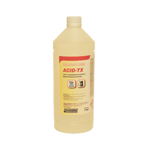- INNOFLUID ACID-TX vízkő- és rozsdaoldó 1L - vízkő-és rozsdaoldó tisztító koncentrátum - fékezett habzású készítmény, gépi felhasználásra is alkalmas - Alkalmazási paraméterek: 1-5 % 20-60°C 1-30 perc rendszeres felülettakarítás 5-10 % 20-60°C 5