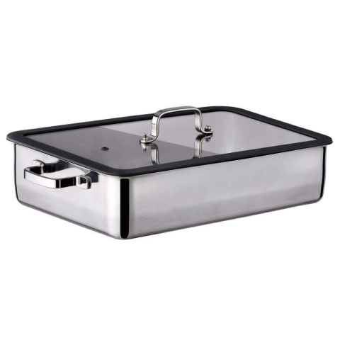 Inoxriv Prémium rozsdamentes mély tepsi hőálló üvegfedővel 46x25x8 cm edény 1 kép