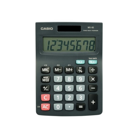 asztali számológép standard funkciók TAX (adószámítási) funkció független memória kettős tápegység tömeg: 100 g méret: 31,7 x 103 x 145 mm típus: 8S kijelzőn megjelenített maximális karaktermennyiség: 8