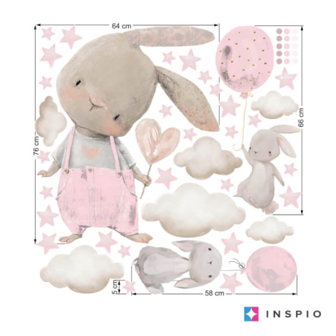 INSPIO Akvarell falmatricák - Világos rózsaszín nyuszik (9513f)