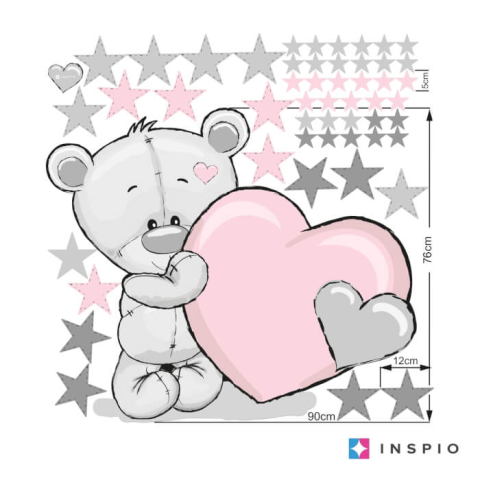 1 kép INSPIO Falmatrica gyerekeknek - Maci púder színű szívecskével és névvel (9478f)